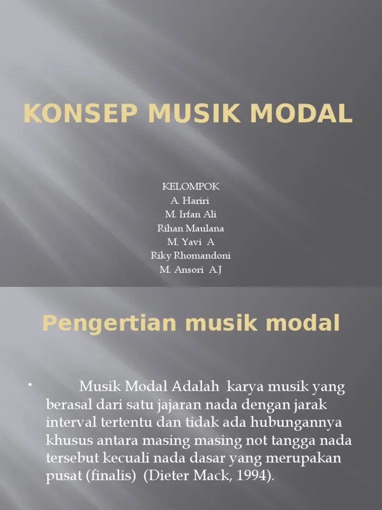 Populer dari kata pop ( popular), di gemari, disenangi masyarakat, musik pop berarti musik yang lagi digemari dimasyarakat dalam kurun waktu tertentu. musik modal memiliki 7 tangga nada ionian, dorian, frigia, lydian, mixolydian, aeolian, dan mode locrian, masingmasing tujuh skala modal terdiri dari pengaturan tertentu dari nada diatonis dari satu oktaf. Sejarah musik klasik dimulai pada tahun 1750 setelah berakhirnya musik barok dan rokoko. Menurut kamus besar bahasa indonesia (kbbi), kata alat yang berarti suatu benda yang digunakan untuk mempermudah suatu kegiatan atau kerjaan. Kata musik berasal dari bahasa yunani, yaitu mousike yang diambil dari nama dewa yang terkenal dalam mitologi yunani kuno, yaitu mousa.